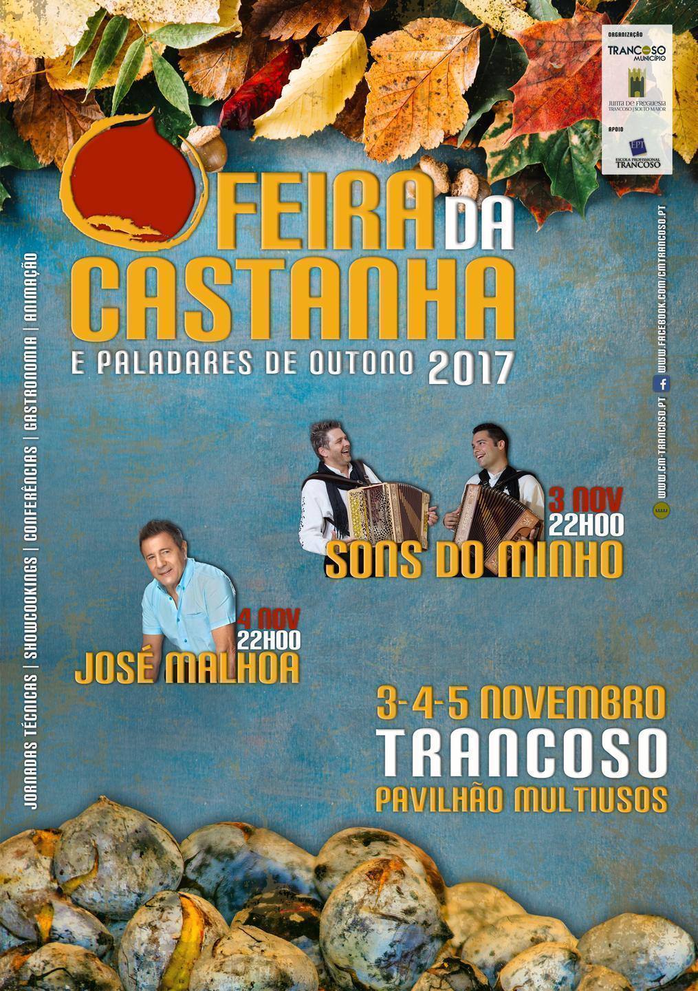 Conheça o programa completo da 5ª edição da Feira da Castanha e Paladares de Outono, que se realiza este ano entre os dias 3 e 5 de novembro, no pavilhão multiusos em Trancoso.