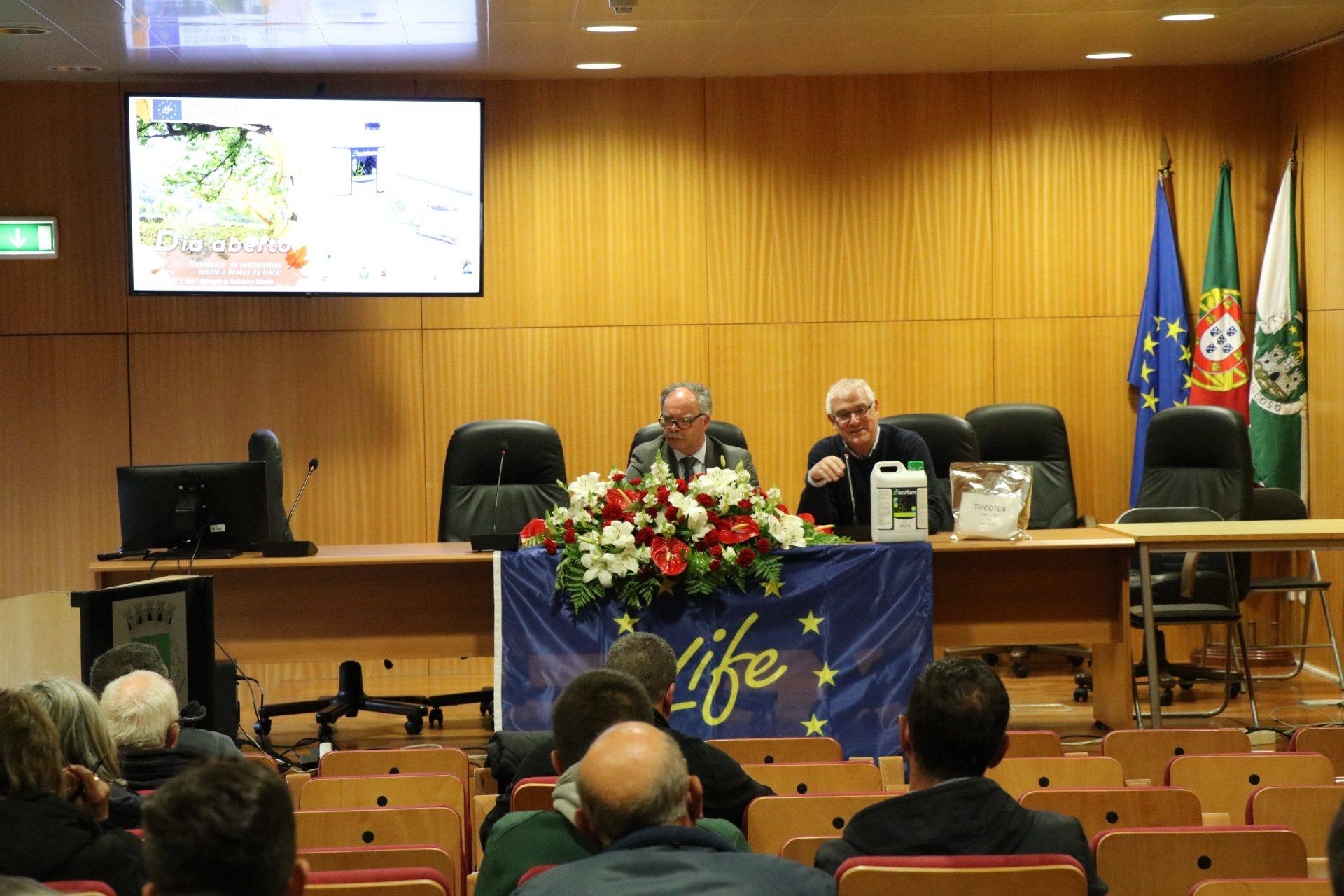 A sessão incidiu, essencialmente, na temática da aplicação dos biopesticidas Bactrium e Tricoten para o tratamento da tinta no castanheiro, ao abrigo do projeto Life Fagesos, que se realiza em estreita cooperação com o Município de Trancoso.